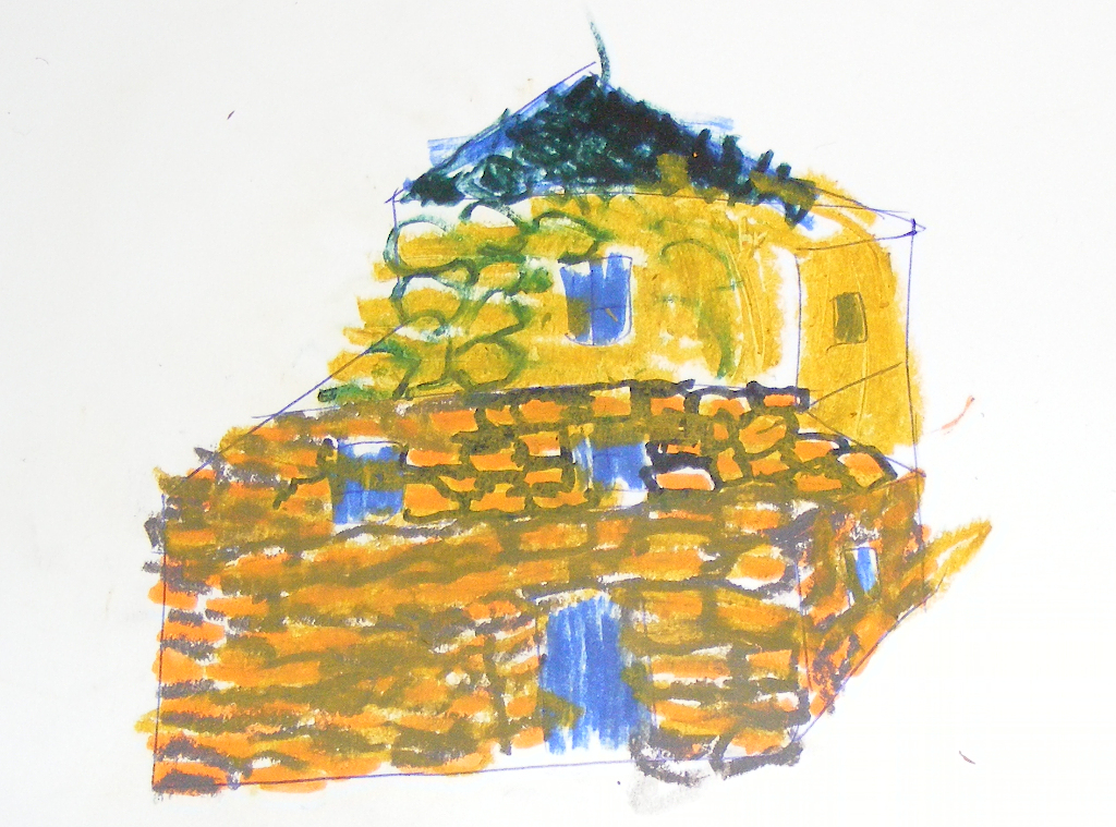 Kőház olajpasztell technikával